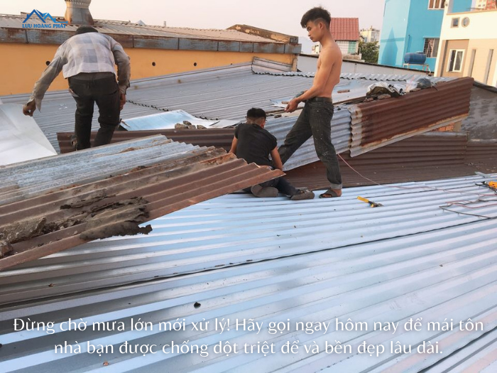 Với đội ngũ thợ giàu kinh nghiệm và vật liệu cao cấp. Lưu Hoàng Phát mang đến dịch vụ chống dột mái tôn chuyên nghiệp. Cam kết hết dột mới thanh toán và bảo hành dài hạn tại quận 7.