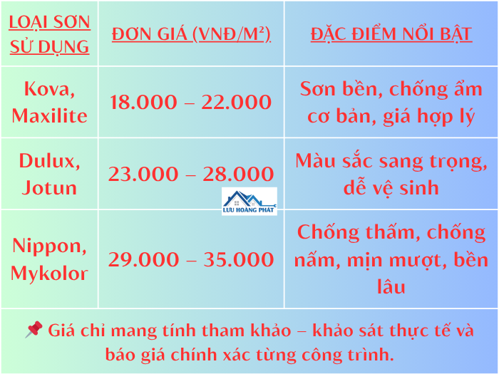 - Sử dụng sơn chính hãng: Dulux, Jotun, Nippon