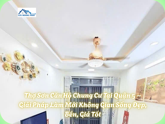 Thợ sơn căn hộ chung cư tại quận 5 chuyên nghiệp, giá tốt, thi công sạch đẹp, đúng tiến độ. Nhận sơn mới, sơn lại căn hộ cũ, xử lý bong tróc, ẩm mốc. Gọi ngay 0703.613.945 để được tư vấn và báo giá nhanh.